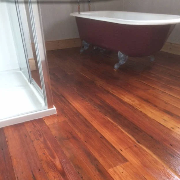 Here we have a client who used our Original Face Pitch Pine Flooring in their bathroom. Finished with a clear hard wax oil to bring out the natural richness of the wood.