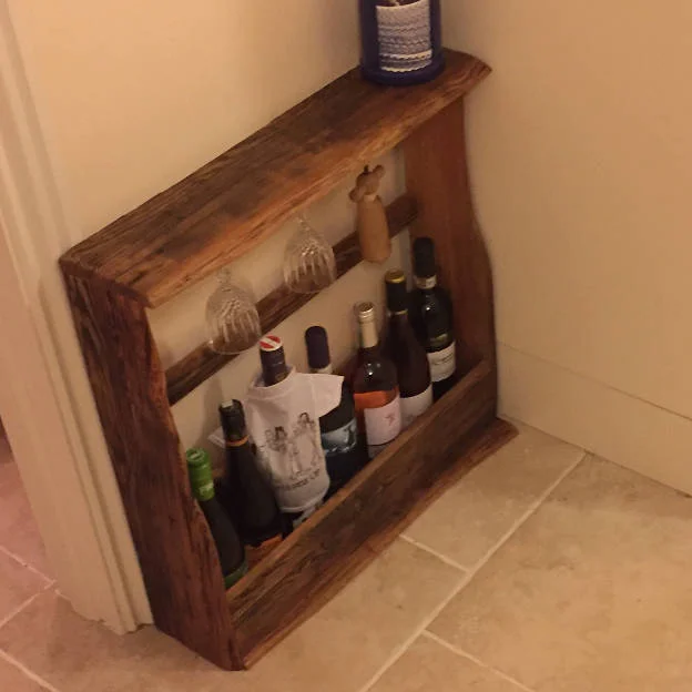 Wine Rack custom built for a client using Pitch Pine cut offs, and finished with a teak oil.